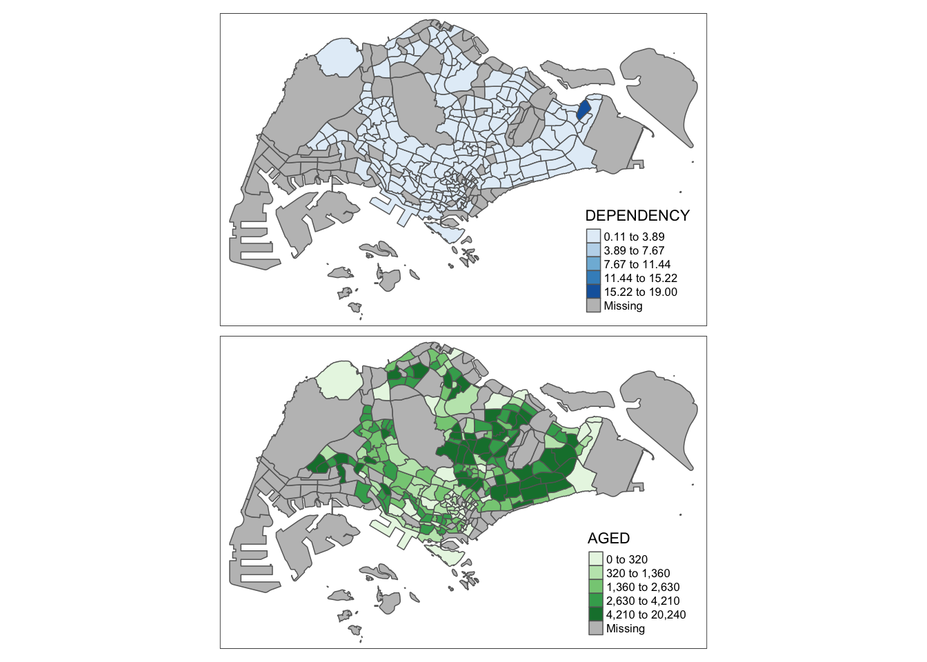 Choropleth mapping involves the symbolisation of enumeration units, such as countries, provinces, states, counties or census units, using area patterns or graduated colors. For example, a social scientist may need to use a choropleth map to portray the spatial distribution of aged population of Singapore by Master Plan 2014 Subzone Boundary.